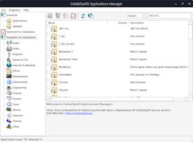 Some of the very last CollabSysOS releases use application managers to download software instead of including them on the OS itself. As this required a server that is now offline, you can use this registry patch to enable the use of a replacement server (check out README.txt before applying the patch!).